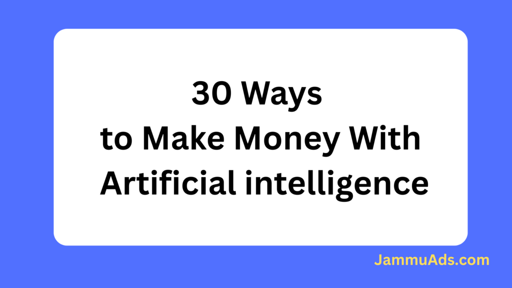 Top 30 Ways to Make Money With Artificial Intelligence- Many people are increasing their income with the help of artificial intelligence. They are generating passive income by using AI tools and creating products. Most of the AI tools are free. You just need to find an idea that suits your interests and you can start a profitable project.